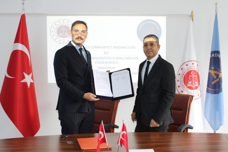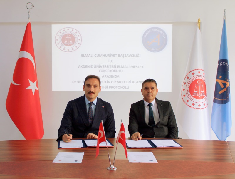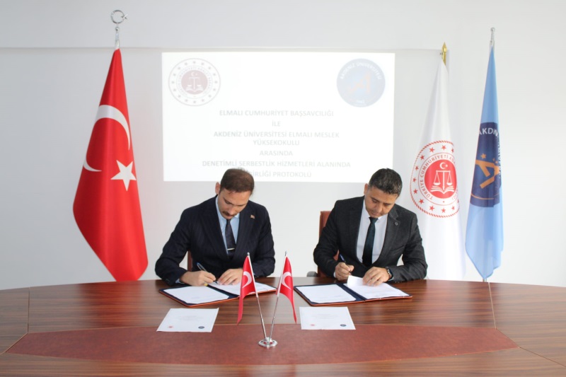 Elmalı Cumhuriyet Başsavcılığı ile Akdeniz Üniversitesi Elmalı Meslek Yüksek Okulu Müdürlüğü arasında denetimli serbestlik hizmetleri alanında iş birliği protokolü imzalandı.